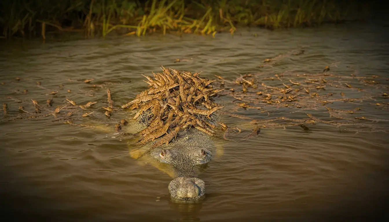 Hai presente quei momenti che sembrano usciti da un libro fantasy, al punto che ti chiedi se non sia tutto un sogno o, peggio ancora, una trovata digitale? Ecco, preparati a stupirti: questa volta è tutto vero, e la realtà supera la fantasia. Cento cuccioli di coccodrillo, belli pimpanti, che ballano praticamente il conga sul dorso del loro padre. No, non siamo davanti a un capolavoro di animazione: questa scena straordinaria è stata immortalata nell’incredibile scatto naturalistico che ha letteralmente conquistato il mondo.